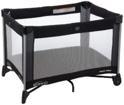 - Features folding feet and wheels for 20% more compact fold than other Graco playards