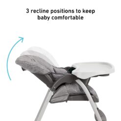 Graco’s Slim Snacker is the ultra-fast folding highchair, with a one-hand, one-second fold. Moms (and dads!) will love how easy it is! Once folded, it’s ultra-compact, so it fits in small spaces and is self-standing for easy storage. Cleaning this slim highchair is a snap too – just wipe the seat pad down to keep your child’s dining space tidy. A large mesh storage basket for your child’s favorite things and a full-sized cupholder keep it convenient, while the three-position reclining seat, footrest and seat pad keep your child comfy during meals and snacks.