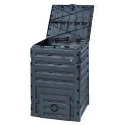 Eco-master 120 gal. composter turns kitchen waste into rich compost. Constructed from 100% recycled UV-resistant polypropylene. Great one piece feed opening. Lid with wind protection. Easy and convenient assembly without tools. Convenient withdrawal of compost thanks to a big flap with handle. Ideal ventilation. Requires little space.
