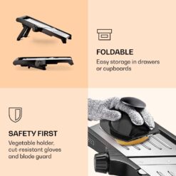 - Includes Cut-Resistant Gloves: The slicer comes with a pair of cut-resistant gloves to protect your hands during use.
