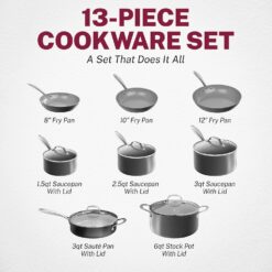 Granitestone 13 Pc Ceramic Pots and Pans Set Non Stick Cookware Set, Kitchen Cookware Sets, Pot and Pan Set, Hard Anodized Ceramic Cookware Set, Nonstick Cookware Set, Dishwasher Safe