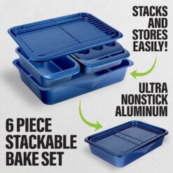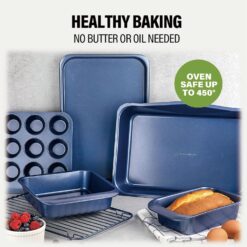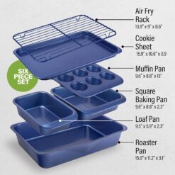 - Complete Bakeware Set: This Granitestone bakeware set includes everything you need to start baking and cooking like a pro right out of the box while saving tons of space in your kitchen and cabinets. The set includes an XL cookie sheet, jumbo muffin pan, full sized square baking pan, full sized loaf pan, roaster pan, and an air fry rack.