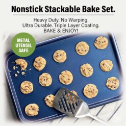 - Nonstick Coating: Get healthier foods, easy food release, and spend less time with cleanup with Granitestone’s ultra nonstick coating – This bakeware set is generously coated 3 times with nonstick technology and reinforced with diamonds, preventing any foods or liquids from sticking to your bakeware while baking, without any oils or butters needed.