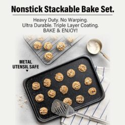 - Nonstick Coating: Get healthier foods and spend less time with cleanup with the Granitestone ultra nonstick coating – this bakeware set is coated 3 times with nonstick technology preventing any foods or liquids from sticking to your bakeware while baking without any oils or butters needed.