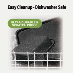 - Dishwasher and Oven Safe: Save yourself time and effort when cleaning up with this bakeware set by simply throwing your bakeware in the dishwasher after use for an effortless cleanup.