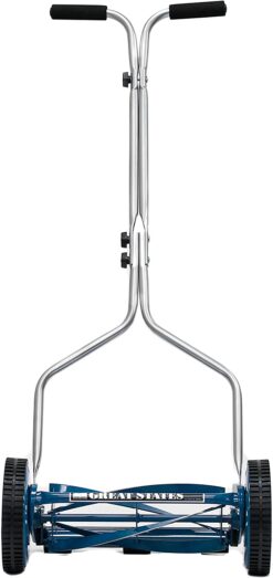 This lightweight manual lawn mower has 8.5″ push mower wheels that give you optimal maneuverability in the outdoors. You can easily push it in and around your yard or store it easily in your shed when not in use. The Great States small push lawn mower is light enough to hang on the wall to save space when not in use.