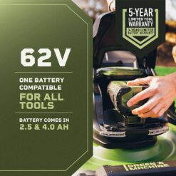 Green Machined 62-Volt 4 Ah Battery for outdoor lawn projects that extended runtime. USB Port for use as charger or power source for portable electronic devices. Compatible with all Green Machine 62-Volt outdoor power equipment.