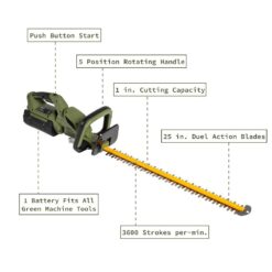 Green Machine GMHT6200 62V Brushless 25in. Cordless Battery Push start Hedge Trimmer with Rotating Handle and 2.5 Ah Batter and Rapid Charger