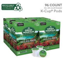 Green Mountain Coffee Roasters Costa Rica Paraiso, Single-Serve Keurig K-Cup Pods, Medium Roast Coffee, 96 Count (Pack of 4)
