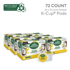 Green Mountain Coffee Roasters Island Coconut, Single-Serve Keurig K-Cup Pod, Flavored Light Roast Coffee, 12 Count (Pack of 6)