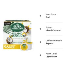 Green Mountain Coffee Roasters Island Coconut, Single-Serve Keurig K-Cup Pods, Flavored Light Roast Coffee, 24 Count (Pack of 4)
