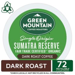 Green Mountain Coffee Roasters Sumatra Reserve, Single-Serve Keurig K-Cup Pods, Dark Roast Coffee, 72 Count