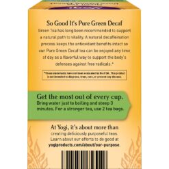 Green Tea has long been recommended to support a natural path to vitality. Yogi Green Tea Pure Green Decaf tea combines a blend of carefully selected organic Green Tea leaves, and a natural decaffeination process keeps the antioxidant benefits and fragrant flavor intact. Enjoy Yogi Green Tea Pure Green Decaf tea any time of day as a delicious way to support overall health.