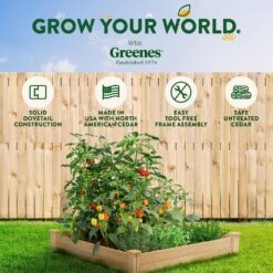 - Greenes original raised garden bed: Greenes Fence Original line of cedar raised garden beds allows you to create an open-bottom frame to support your garden; raised garden beds give your plants the room they need to grow in the location of your choice; our cedar frame is left untreated, which means it is organic and safe to grow vegetables, herbs, and fruits in