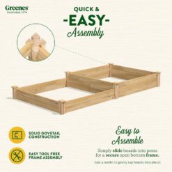 - East to set up: Greenes Fence raised garden beds use dovetail interlocking joints, which makes assembly a breeze; Each board slides into the corner posts without tools to form a secure open-bottom garden frame; Every corner post is routed on all four sides for easy assembly and expansion; The decorative tops can be added to each post using a screwdriver