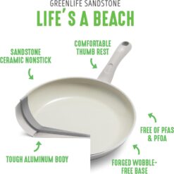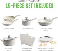 GreenLife Sandstone Healthy Ceramic Nonstick, 15 Piece Kitchen Cookware Pots and Frying Sauce Pans Set, PFAS- Free, Dishwasher Safe, Gray