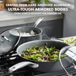 - ULTRA-TOUGH ARMORED BODIES: The hard anodized construction makes these pans extra scratch-resistant and perfect for everyday use.