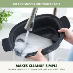 - REMOVABLE 6QT HARD ANODIZED POT: The ultra-durable construction makes this pot metal utensil safe and allows for extremely fast and even heating. Plus, the pot is dishwasher safe for easy cleaning.