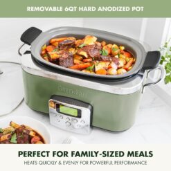 GreenPan Elite 8-in-1 Programmable 6QT Electric Slow Cooker, Dishwasher Safe Lid & Removable Crock, PFAS-Free Healthy Ceramic Nonstick Multi-Cooker, Sear, Sauté, Brown, Steam Basket, Roast, Sage Green