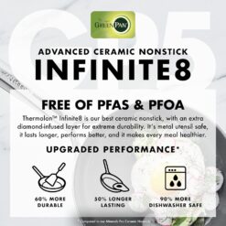 - CUTTING-EDGE CERAMIC NONSTICK: Infinite8, the most state-of-the-art ceramic nonstick GreenPan has ever created, an ultra-durable coating with layers of diamonds for cutting-edge performance and durability, metal utensil safe