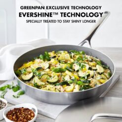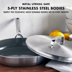 GreenPan GP5 Stainless Steel 5-Ply Healthy Ceramic Nonstick 12″ Frying Pan Skillet with Lid, Scratch Resistant, Induction, Dishwasher & Oven Safe, PFAS-Free