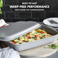 GreenPan Premiere Ovenware Healthy Ceramic Nonstick 13″ x 9″ Rectangular Baking Pan with Lid, Cast Aluminum Bakeware, Warp-Free, Oven and Broiler safe to 600F, Dishwasher Safe, PFAS-Free, Gray