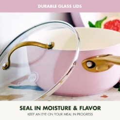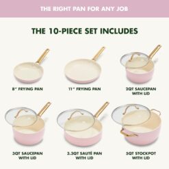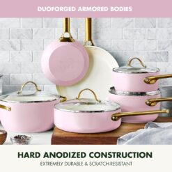 GreenPan Reserve Hard Anodized Healthy Ceramic Nonstick 10 Piece Cookware Pots and Pans Set, Gold Handle, PFAS-Free, Dishwasher Safe, Oven Safe, Blush Pink