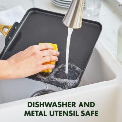 GreenPan Reserve Hard Anodized Healthy Ceramic Nonstick, 11″ Square Griddle Pan, Gold Handle, PFAS-Free, Dishwasher Safe, Oven Safe, Black