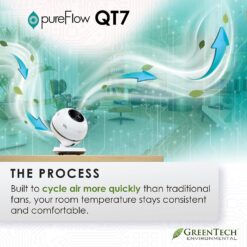 GreenTech Environmental pureFlow QT7 Bladeless Fan – Desk Fan for Bedroom, Home Office – Unique 90 Degree Vertical and Horizontal Oscillating Fan with Remote, Energy Efficient and Whisper Quiet