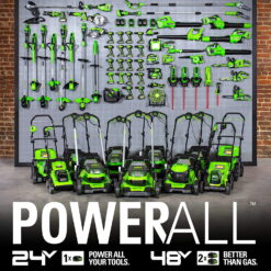 The Greenworks 24V lithium-ion platform powers over 50 indoor and outdoor products, including lawn mowers, blowers, string trimmers, chainsaws, power tools, and more! The 24V lithium-ion battery provides 20% more power and 35% more run-time, and delivers fade-free power with no memory loss after charging. The outdoor power equipment allows you to tackle up to 1/4 acre with the available 1.5Ah, 2Ah, 4Ah, and 5Ah batteries. USB ports are integrated into the BAG711, BAG708, BAG709, BAG710 batteries, making it a portable charger for phones, tablets, and other compatible electronic accessories.