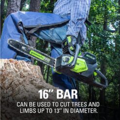 Greenworks 80V 16″ Brushless Cordless Chainsaw (Great For Tree Felling, Limbing, Pruning, and Firewood / 75+ Compatible Tools), 2.0Ah Battery and Charger Included