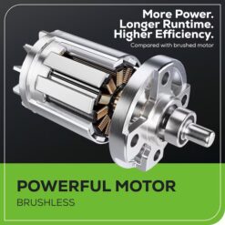 - Brushless Motor: 2x more torque, power, longer runtimes, quiet operation, and extended motor life