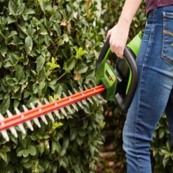 The Greenworks Pro 80V 26-in Hedge Trimmer provides best in class cutting performance, with 26-in dual action, laser cut, steel blades. This unit has a cutting speed of 3,200 strokes per minute for a faster, more efficient cut, leaving you with impressive results every time. The intelligent brushless motor maximizes efficiency by providing more power, torque, and longer life and the 180°rotating rear handle allows for precision cutting at any angle. Features an easy trigger start, lightweight design, and over-molded wrap-around handle for optimal comfort and control. The included battery powers 75+ Greenworks 80V products and the 80V platform comes with a 4-year limited warranty.