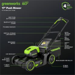 Greenworks MBCK60L410 60V 17″ Brushless (Push) Mower + 60V (610 CFM) Brushless Blower, 4.0Ah Battery and 3A Charger