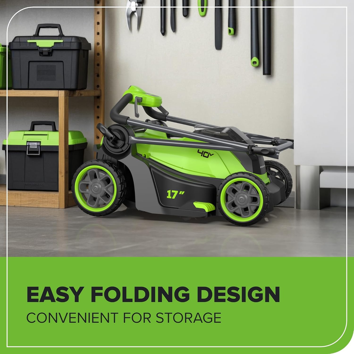 Greenworks MO40L413-00 40V 17” Brushless (Push) Cordless Lawn Mower, 4.0Ah Battery and Charger