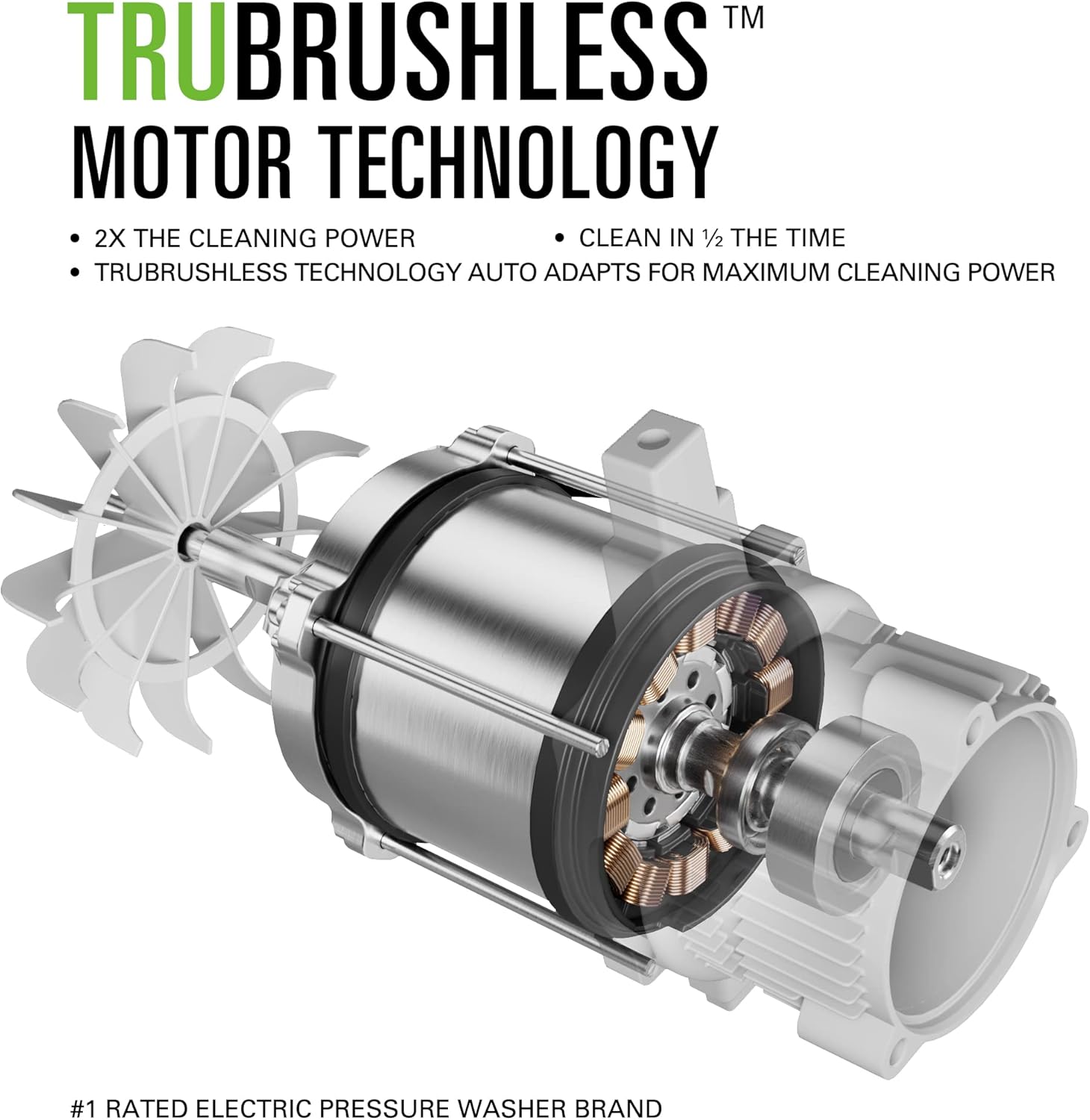 - TRUBRUSHLESS MOTOR : Powerful 14 Amp TruBrushless motor generates 3000 PSI and 2.0 GPM for maximum cleaning power.Cleaning Units 3300 C.U. Maximum Inlet Water Temperature 104°F (40°C).Frequency : 60 hz