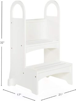 Guidecraft Kitchen Helper High-Rise Step-Up – White – Two Step Stool with Handles and Safety Non-Slip Treads and Anti-Tip Feet for Kids and Adults- Quality Wood Learning Furniture