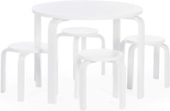 Guidecraft Nordic Table and Chairs Set for Kids: White – Stacking Bentwood Stools with Curved Wood Toddler Activity Table – Children’s Modern Bedroom, Playroom, and Living Room Furniture