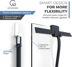 GÜTEWERK Shower Squeegee Black 11 in – incl. Chrome Suction Cup Hook