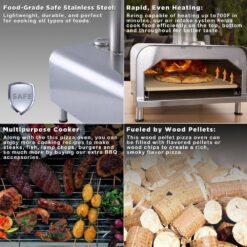 - Food-grade safe stainless steel lightweight, durable and perfect for cooking all types of foods, this wood pellet oven is safe, easy to use and even easier to clean