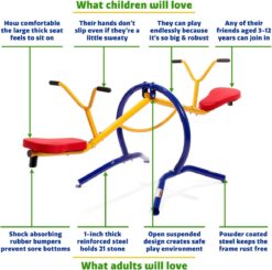- Safe & Ergonomic Design – this fun and pleasurable play set is designed with a single fulcrum for a more traditional rocking motion. it also features ergonomic handle bars so your children can easily grip the bars without worrying of falling off balance