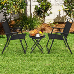 Gymax 3PCS Folding Patio Bistro Set Outdoor Furniture Set w/ Steel Frame, Black