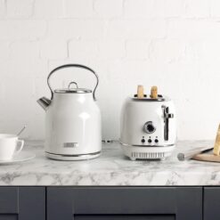 - 2-SLICE TOASTER: This stylish and sleek Haden electric toaster with powder coated stainless steel design and chrome accents adds elegance to any kitchen appliance collection and brightens up your daily toasted snack routine; Has two extra-wide slots