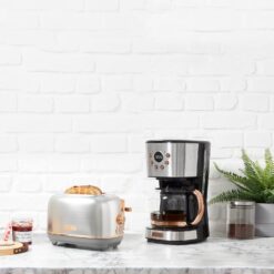 - 2-SLICE TOASTER: This stylish and sleek Haden electric toaster with powder coated stainless steel design and chrome accents adds elegance to any kitchen appliance collection and brightens up your daily toasted snack routine; Has two extra-wide slots