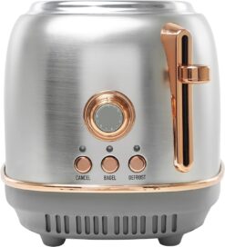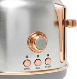 HADEN Heritage Bread Toaster – 2-Slice Wide Slot Toaster with Button Settings, Removable Crumb Tray with Bagel and Defrost Settings (Steel and Copper)