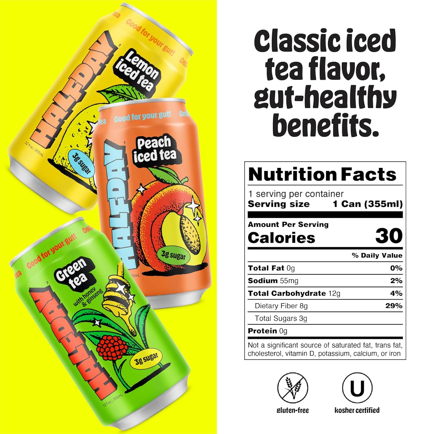 Brewed Organic Green Tea (Filtered Water, Organic Gree Green Tea), Organic Prebiotic Agave Fiber Organic Agave Syrup. Lemon Juice Concentrate, Apple Juice Concentrate, Organic Honey Flavor, Ginseng Extract, Stevia Leaf Extract