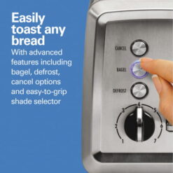 - EASILY TOAST ANY BREAD: This versatile 2 slice toaster has advanced features to easily toast breads, bagels, English muffins, frozen waffles, pancakes and more. Includes bagel, defrost, cancel options and easy-to-grip shade selector with 7 toast shades.