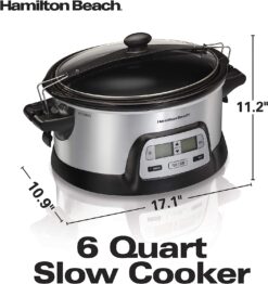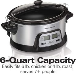 Hamilton Beach 33861 Portable Programmable Slow Cooker, Dishwasher Safe Crock, 6 Qt, FlexCook Dual Digital Timer/2 Heat Settings, Lid Lock for Easy Travel, Silver