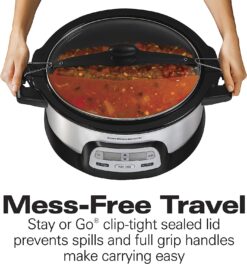 - Mess-Free Travel This 6-Quart Slow Cooker’s Stay or Go Clip-Tight Sealed Lid Prevents Spills and Leaks While Full Grip Handles Make Carrying Easy