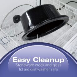 - Both the lid and stoneware crock remove easily and go into the dishwasher for cleanup